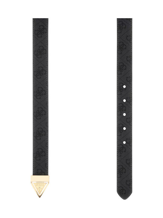 Women's belt with an all-over logo print and a clip closure and a buckle with a triangular logo.