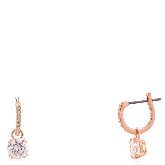 Swarovski Ladies Earrings. Constella series. SKU: 5648991. Swarovski Constella Crystal Hoop Earrings. Elegant and captivating, these Constella hoop earrings feature a sparkling central round crystal accented with pave detailing along the gallery and hoops. Finished in warm rose gold-tone plating, they offer a luxurious shimmer perfect for dressing up any look. Material: Rose gold-tone plating, Swarovski crystals. Style: Hoop earrings.