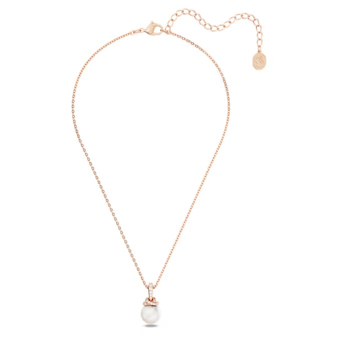 Luxurious without exaggeration can sometimes be the most eye-catching tool. An excellent example of exaggerated luxury, the Originally necklace tip is presented with a pink gold-plated chain with a single Swarovski Crystal Pearl. The pearl was completed with the glittered pavé Swarovski Zirconya to add extra bright. Use this design to add a glittering touch to all your appearances.