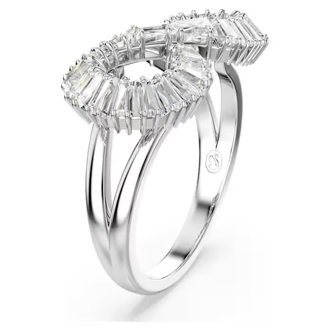 The untimely style comes to life in this ring in the form of an infinity symbol. Rhodium veneer jewelry offers a shiny and spiral design decorated with a splash of clear Swarovski Summits, which are skillfully placed to bring out spectacular details. It's a dizzying and hypnotizing ring that's as beautiful as it's symbolic.