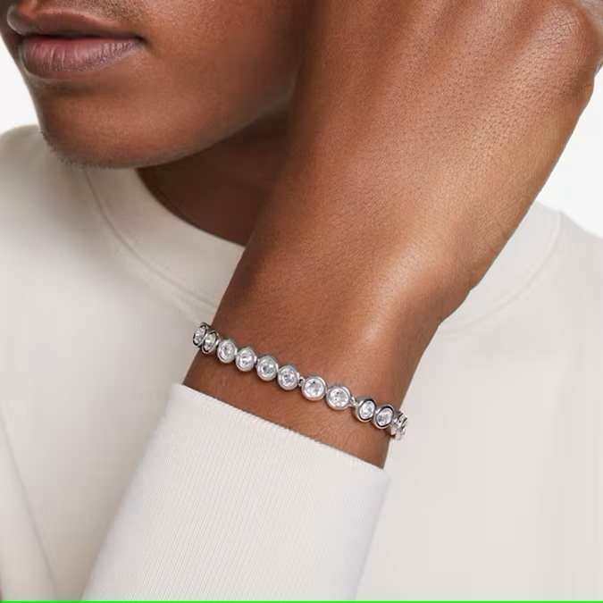 Designed with a classic blend of elegant shades, this Imber Tennis wristband is the perfect choice for timeless elite. Rhodium coating design, which is decorated from top to bottom with round-cut crystals in a shish bezel placement, is completed with lobster closure. A wonderful way to add sparkle to your daily stylings or your evening-specific look.