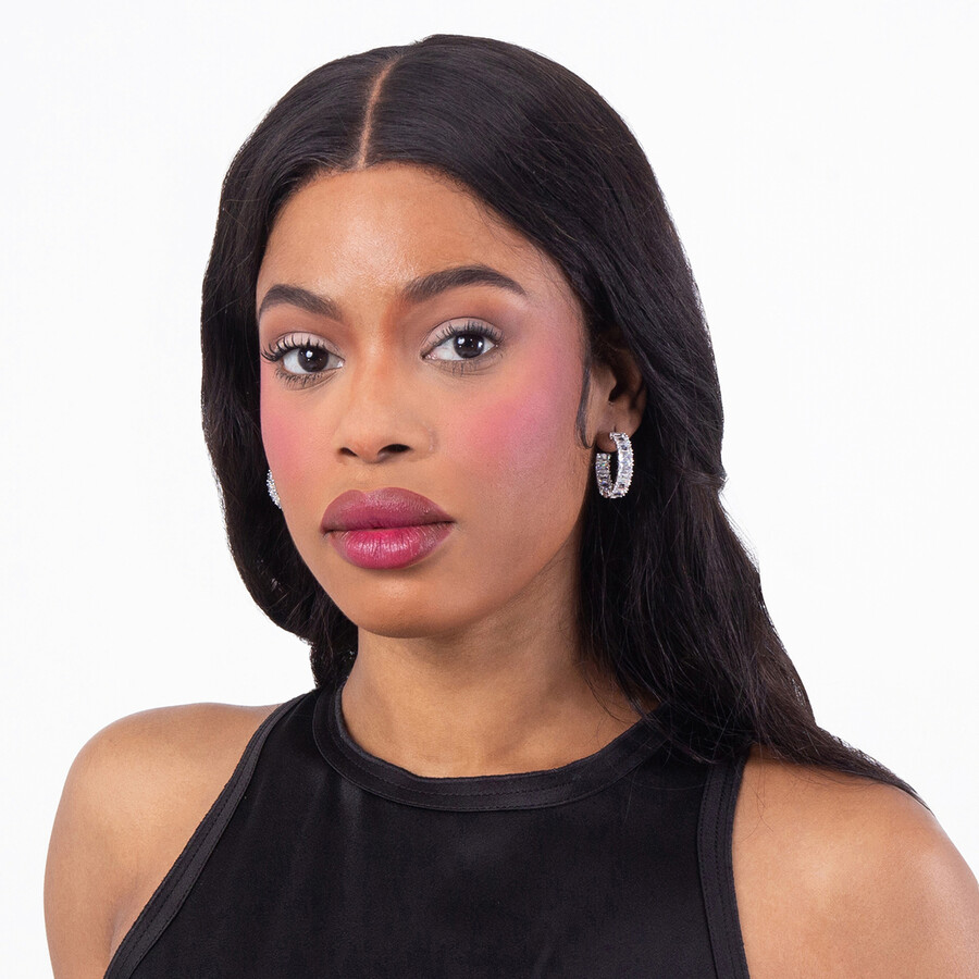 Swarovski Ladies Earrings. Millenia series. SKU: 5689681. Swarovski Matrix Hoop Earrings. Make a statement with the Swarovski Matrix Hoop Earrings. Featuring a row of rectangular-cut clear Swarovski crystals, these rhodium-plated hoops combine modern architectural style with brilliant sparkle. Expertly set to maximize light reflection, they offer a glamorous touch for both everyday wear and special occasions. Material: Rhodium-plated metal, Swarovski crystals (rectangular cut). Closure: Post back with secure fastening.